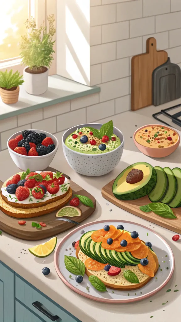 Chia Pudding: Only takes 5 minutes to throw together the night before, and boom – creamy, satisfying breakfast waiting for you. Use monk fruit or a little coconut sugar to sweeten it up, and don’t skip the cinnamon!